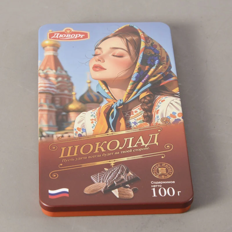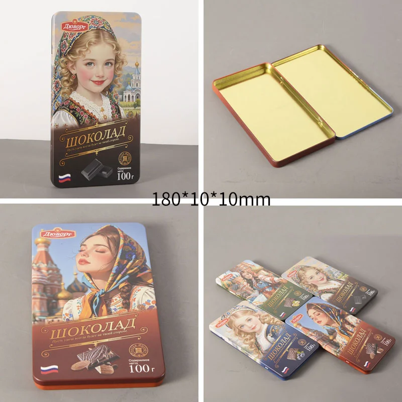 ك مورد حاوية قصدير الشوكولاتة مستطيلة مخصصة، نحن نقدم حلول تغليف قصدير مخصصة بالكامل ومصممة خصيصًا لماركات الشوكولاتة وشركات الحلويات ومصنعي منتجات الهدايا. يتميز صندوق القصدير المستطيل هذا بأبعاد دقيقة تبلغ 180×100×10 مم، وهو مثالي لألواح الشوكولاتة، والأجهزة اللوحية، والحلويات المسطحة، ويجمع بين الحماية والمظهر الأنيق.