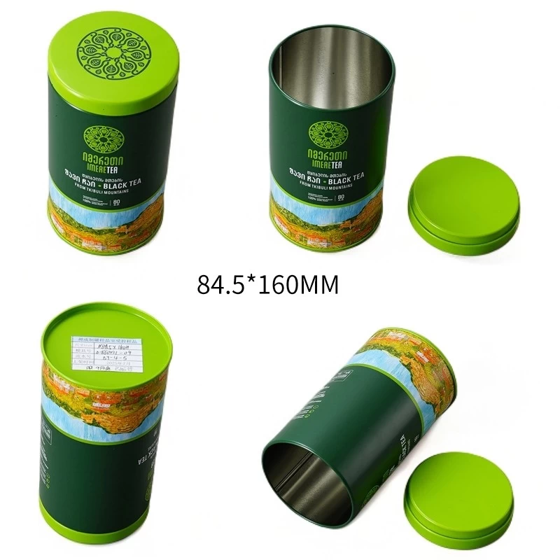 Our Custom Round Tea Tin Container Supplier provides high-quality, food-safe tin packaging tailored for tea, coffee, and specialty products. With dimensions of 84.5×160mm and 0.23MM thickness, this round tin ensures durability, airtightness, and product freshness. The CMYK + Spot Color printing delivers vibrant, eye-catching branding, making it ideal for both retail and promotional use.
