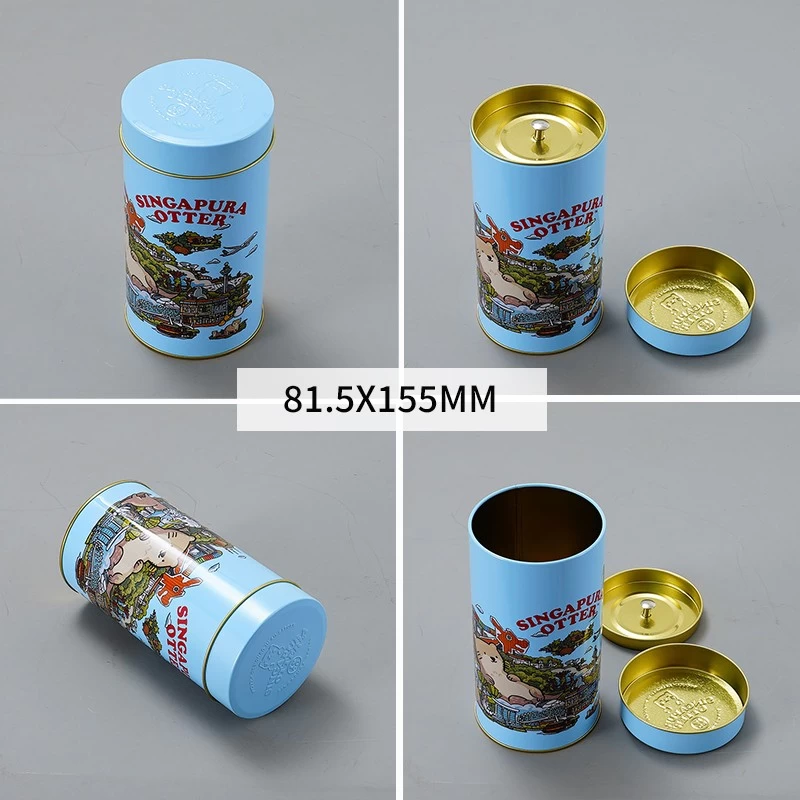 This customized round tin box (81.5×155mm) is manufactured using high-quality 0.23mm tinplate, offering strong durability and excellent protection for food and gift items. With CMYK + spot color printing, the surface can be fully customized, delivering vivid graphics, brand elements, and premium visual appeal.