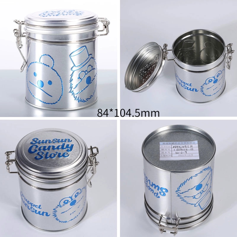 Made from 0.23 mm food-grade tinplate, the container offers excellent resistance to pressure and corrosion. With a compact 84 × 104.5 mm size, it is suitable for a variety of products including tea leaves, biscuits, candies, chocolates, spices, and gift items.