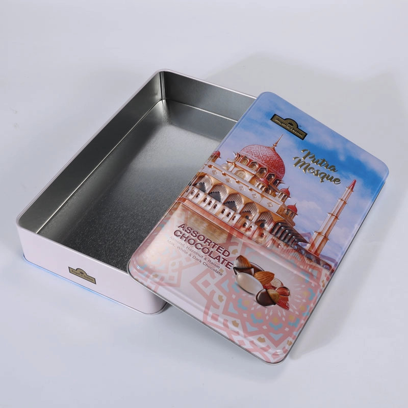 Como profissional Fábrica personalizada de recipientes retangulares de lata de metal na China, usamos materiais de folha-de-flandres de qualidade alimentar que atendem aos padrões internacionais de segurança. Nossa produção segue rigorosos sistemas de controle de qualidade, garantindo a segurança das embalagens de produtos alimentícios como biscoitos, chocolates, balas e muito mais. Os revestimentos não são tóxicos e são resistentes à ferrugem, proporcionando armazenamento a longo prazo e frescor do produto.